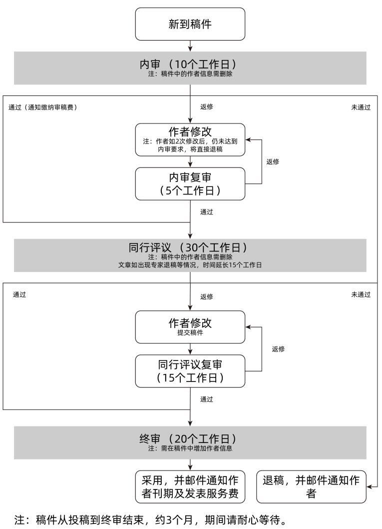 编辑部有权对文稿进行必要的文字性删减。如不同意删改请事先申明。编辑部全程通过邮件反馈缴费、修改、录、退等信息。作者亦可登录系统查看稿件进度。在此之前,请勿另投他刊。评审周期平均在3个月左右,请作者及时关注邮件和系统反馈。